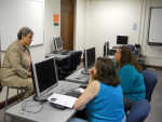 Patsy Garner, Crowder College teacher education coordinator, speaks with two potential students for the new education program at Crowder at an open house Thursday. The program, offering students the opportunity to obtain a Bachelor of Science in Elementary Education in Nevada, is a partnership between Crowder College and Missouri State University in Springfield, Mo. ... -