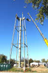 Workers for Midwest Crane and Rigging of Olathe Kan. and Phoenix Fabricators and Erectors of Avon, Ind., swing another section of the bowl into place in their efforts to get the new Bronaugh water tower "hung" by the end of the day on Thursday, Oct. ... -