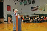 President Harry S. Truman, as portrayed by Dave Hall, speaks to a full gymnasium at the Bronaugh High School during a Veterans Day program held Thursday, Nov. 11. Truman spoke of his beginnings, military service, political life and the hard decision he had to make when he decided to drop the atomic bomb on the Japanese islands of Hiroshima and Nagasaki in order to bring World War II to a close and save untold thousands of American soldiers' lives. ... -
