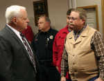 Graham Burnley, Nevada's new police chief, visits with Vernon County Sheriff Ron Peckman, left, during a reception Friday to give Burnley an opportunity to meet the Nevada police officers, council members, area law enforcement personnel and community leaders. Burnley, who has been with the Chesterfield Police Department since 1989, and a police officer since 1974, will start work in Nevada on Jan. 1... -