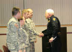 Nevada Police Chief Graham Burnley thanks SP4 Andrew Gomez, Sgt. Crystal Carney, SFC Adam Gremmal and Staff Sgt. Darcey Ogg from the 1139th MP Company of the Missouri National Guard, Harrisonville, during last Thursday's city council meeting for the assistance they provided to Nevada Police Department as well as the Vernon County Ambulance District following last week's heavy snow... -