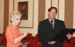 Fort Scott, Kan. -- Sixth District Judge Mark Ward, right, presents Bourbon County District Court Clerk Karen Paddock, left, with a certificate of appreciation from the Kansas Supreme Court Friday morning. Paddock retired Friday after nearly 31 years in the office. ... -