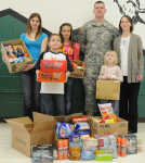 Students participating in the Character Education, After School and the Future Business Leaders of America programs at the Bronaugh R-7 school present several boxes of items to Sergeant Chris Haynes of Moundville, Mo., on Thursday. Students in grades K-12 collected various food items, magazines, toiletries, bug spray, socks and many other things for Sgt. ... -