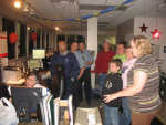 Western Missouri 911 Dispatch Center Supervisor Kristi Sutton, right, explains operations at a Friday open house at the center. From left are dispatcher Marilyn Selvey, Michael Forquer, Dustin Miller, Chris Bailey, Kris Sisseck, Jessica Medley and Konner and Jamie Sisseck... -