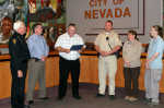 On April 15 Nevada Mayor Brian Leonard issued a proclamation recognizing the week of April 10-16 as National Animal Control Officer Appreciation Week in Nevada. Pictured: Police Chief Graham Burnley, City Manager JD Kehrman, Mayor Brian Leonard, Animal Control officer Ben Douglas, and shelter staff, Amy Prather and Jaymie Ledbetter... -
