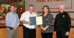 Last Friday Nevada Mayor presented a proclamation to Tonia Davis, Western Missouri 911 Dispatch Center assistant director, declaring the week April 11-17 as National Public Safety Telecommunications Week. Pictured: Nevada City Manager JD Kehrman, Mayor Brian Leonard, Tonia Davis and Police Chief Graham Burnley... -
