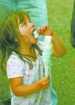 Hiattville 4-H Club member Hannah Fry, left, wrings a sponge out over teammate Jonah Erickson while Ronette Vincent watches during the final event of Friday's Barnyard Olympics at the Bourbon County Fair. The competition paired 4-H members with adults and local celebrities as they faced off in seven barnyard activities such as horseshoe toss, three-legged race, feed scoop toss, and a dizzy bat race. ... -