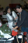 Leung Harris, left, and Erin Morris peruse fetching merchandise in Friday's silent auction at the Osage Prairie YMCA Strong Kids Holiday Festival to raise money for financial assistance scholarship programs for children and families who would not otherwise be able to afford activity fees... -