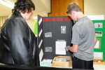 Derek O'Dell shows his mother, Lana, his science fair project Thursday, during the parents exhibit night of the annual Nevada Middle School Science Fair. O'Dell is one of 178 exhibitors at the event. -