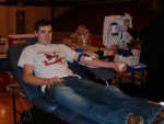 Layne Rapp does his part to help surpass the goal of a Community Blood Center drive at Northeast Vernon County High School on Friday. Nineteen units were collected, four more than the projected goal of 15 units. -