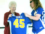 Groundbreaking on a new softball field for the Cottey Comets took place Friday; and philanthropist and P.E.O. member Dorothy Vanek was there. The Vanek Family Memorial Field is so dubbed in honor of her late husband, and in particular daughters, Debbie Butler and Nancy Vanek, who also are both deceased...