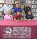 Nevada's Cory Kerbs has signed a letter of intent to play baseball at Hesston College in Hesston, Kan. Kerbs is a 2102 graduate of NHS. In front, from left to right, are Deana Kerbs, Cory Kerbs, and Bobby Kerbs. In back from left, are Donna Berry (Cory's aunt), NHS Assistant Baseball Coach Danny Penn, NHS Head Coach Marty Atnip and NHS Athletic Director Kevin McKinley. Hesston is a two-year school. Kerbs was recruited to play in the outfield... -