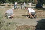 Digging in Troop 42 members work together on Vickers' Eagle Scout project
