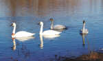 By Lynn A. Wade Nevada Daily Mail Majestic trumpeter swans have made a habit of spending several winter weeks in Nevada, and have been swimming around Katy Allen Lake for a few weeks. These birds, which may weigh up to 30 pounds and have a wingspan of up to 8 feet, were nearly hunted to extinction by the late 1800s because their skin was used to make ladies' powder puffs and the pristine, white feathers were used to make hats...