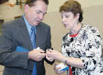 Health Fair Connie Denning, above left, and her granddaughter, Marci Denning, try a healthy juice smoothie at a booth of Dr. Ron Jones at the ninth annual Community Health Fair, coordinated by Nevada Regional Medical Center. Delera Vinson of Lamar waits for her serving. The event was Saturday at the Osage Prairie YMCA... -