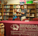 Nevada High School athletic director John McNeley led the presentation of the Kelly Bradham Newcomer Award in the Nevada High School library Tuesday. Created in November of 2001, the Kelly Bradham Newcomer Award is presented to the athlete who has made the most significant contribution as a first-time letterwinner of any varsity athletic team at Nevada High School, for the current school year. ... -
