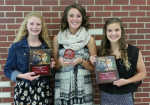 Submitted photo/ Three Nevada Tiger tennis players were honored during a recent banquet for the team. From left to right: Emma Cheaney, Megan Payne, and Jaden Cherry. Megan Payne proudly displays the trophy she received after being named the team's Most Valuable Player. Cheaney, only a freshman, received the team's Tiger Club award. And Cherry was named the team's most improved player... -