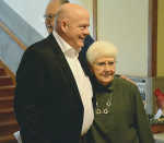 Prosecutor Lynn Ewing greets Gayle Wysong at the reception Tuesday. Michelle Workman/Daily Mail -