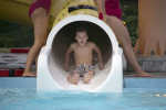 Ryan Smith, 11, goes down the yellow slide at the Isaac Walton Swimming Pool during the National Night Out. Photos by Noah Jones/Daily Mail -