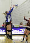 In Monday night middle school volleyball action, Nevada's teams trekked to Carl Junction, where they won one of four matches. The Nevada eighth-grade "A" team was bested in two sets 25-17 and 25-10. The NMS eighth-grade "B" team triumphed in three sets (25-18), 25-10, and 15-10...