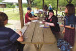 Izac McDermott, left, Mason Bradley, and Alexis Brown, speak to Emily Smith from Preferred Family Healthcare, second from right, about finding employment with the Youth@Work program at the group’s barbecue at Walton Park Wednesday. The program is open to ages 14-24 and has been available for many years. ... -