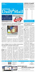 Due to the global pandemic two local institutions of higher education, Cottey College and Crowder College, have turned to online instruction for the remainder of their semesters. It was decided prior to the conclusion of spring break that both schools were eliminating face-to-face classroom instruction for the remainder of the spring semester. The Nevada R-5 school district, meanwhile, is still on lockdown through at least April 3...