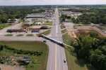 Traffic delays and an obstruction of the roadway occured Monday morning when a semi-truck carrying a wind turbine blade attempted to make a left turn at the intersection of Austin Boulevard and Centennial Avenue, in Nevada. This drone photo shows the blade crossing all four lanes of traffic on Austin Boulevard. With assistance from local law enforcement, the truck was on its way and traffic resumed after a couple hours... -