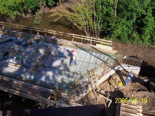 Workers prepare the decking for a bridge near Deerfield in rural Vernon County last week, getting ready for the concrete floor, poured on Tuesday. Workers estimate that the bridge will be completed in about a month.