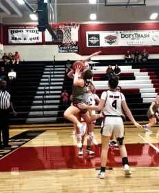 After dispatching the Aurora Lady Houn Dawgs 56-40 on the road Thursday night, Nevada returned home over the weekend to take on the two-time Missouri Class 2 defending state champion Skyline Lady Tigers. Skyline, currently ranked 4th in Missouri Class 3, has won eight state titles since 2008. Nevada would outlast Skyline 49-46 to push their overall record to 10-1 on the season.